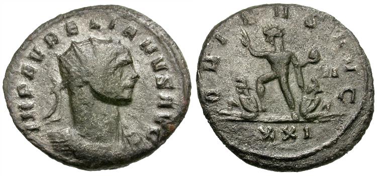 Obverse: IMP AVRELIANVS AVG, radiate and cuirassed bust right