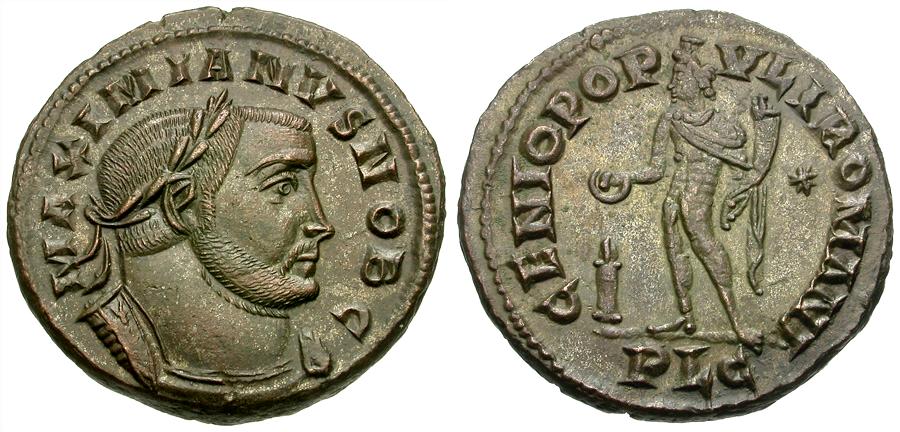 Obverse: MAXIMIANVS NOB C, laureate and cuirassed bust right