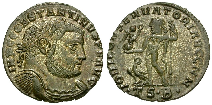 | Constantine I the Great (AD 310-337) Silvered Æ Follis / Jupiter |