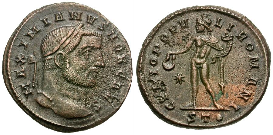 Obverse: MAXIMIANVS NOB CAES, laureate head right
