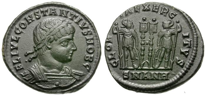 | Constantius II, as Caesar (AD 324-337) Æ4 / Soldiers and Standards |