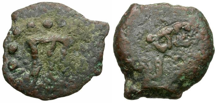 Obverse: Tripod Temple table with loaf on top, flanked by two palm branches