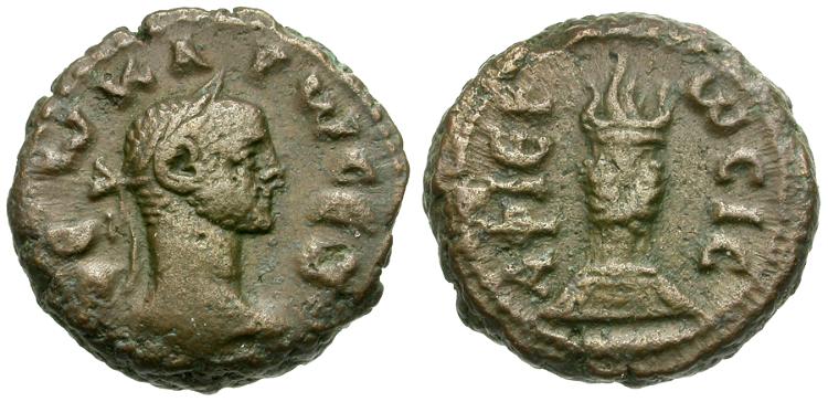 | Divus Carus (died 283). Egypt. Alexandria Æ Tetradrachm / Fire Altar |