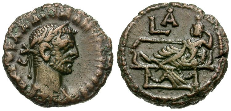 Obverse: A K Γ OVAΛ ΔΙOKΛHTIANOC CЄB, laureate, cuirassed bust right
