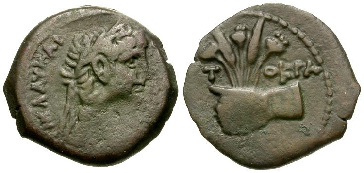 | Claudius (AD 41-54). Egypt. Alexandria Æ Obol / Hand Holding Grain Ears |