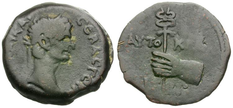 | Claudius (AD 41-54). Egypt. Alexandria Æ Obol / Hand Holding Caduceus |
