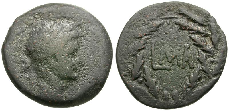 | Augustus (27 BC-AD 14). Egypt. Alexandria Æ Diobol / Date within Wreath |