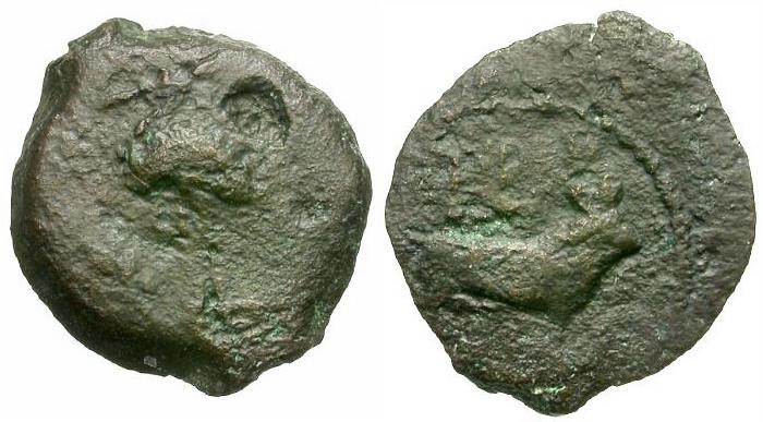| Caligula? (AD 37-41). Egypt. Alexandria Æ Dichalkon / Ibis and Bull |
