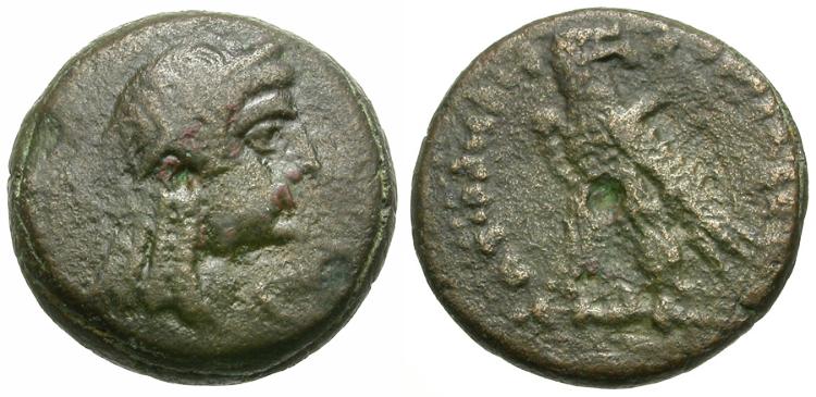 | Ptolemaic Kings of Egypt. Ptolemy VI Philometor (163-145) Æ17 / Demeter |