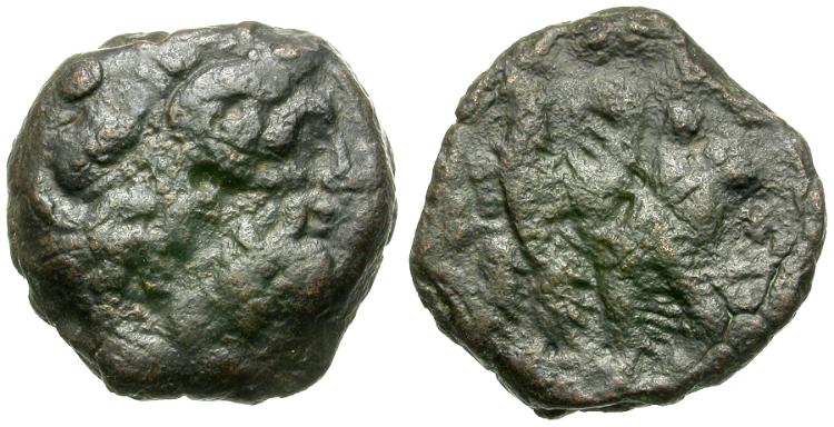 | Ptolemaic Kings of Egypt. Ptolemy IX Soter II (117-81 BC) and Ptolemy X Alexander I (114-88 BC) Æ18 / Two Eagles |