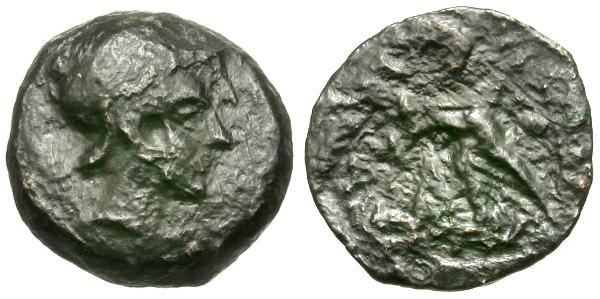 Obverse: Helmeted head of Ares right