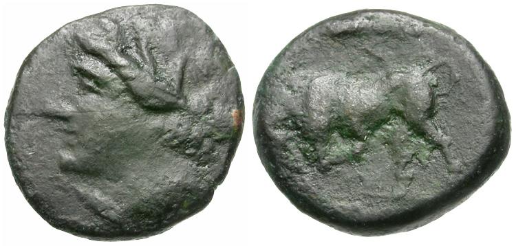 » Lot Info: Sicily. Syracuse. Hieron II (275-215 BC) Æ15 / Bull