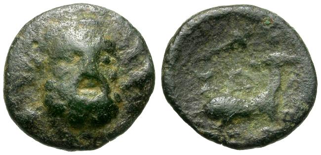 Obverse: Bearded head of Herakles facing, wearing lion skin headdress