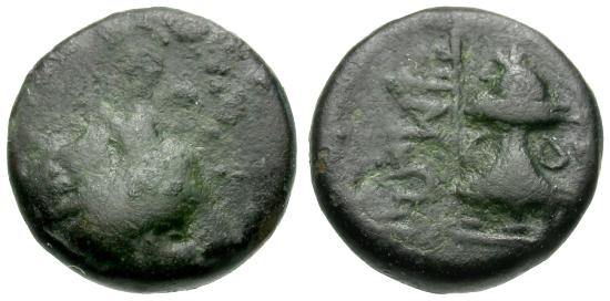 Obverse: Turreted head of Tyche right