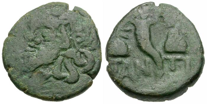 Obverse: Head of Pan left, wreathed in ivy