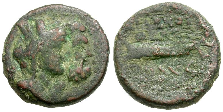 Obverse: Jugate busts of Tyche, turreted and veiled, and Zeus right