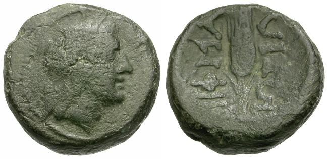 Obverse: Diademed head of Apollo right
