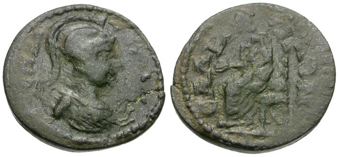 Reverse: CAΛH-NΩN, Cybele seated left, holding patera