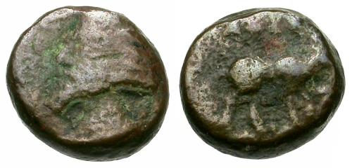 | Kings of Parthia. Phraates IV (38-2 BC) Æ9 / Gazelle |