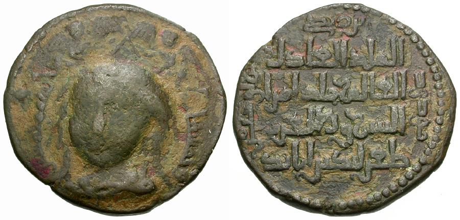 » Lot Info: Islamic. Artuqids of Hisn Kayfa and Amid. Fakhr al-Din Qara Arslan (AH 543-570 / AD 1148-1174) Æ 30mm Dirham