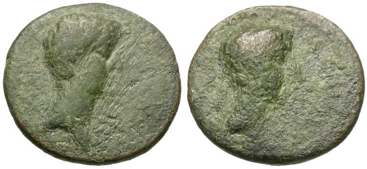 | Augustus (27 BC-AD 14) with King of Thrace. Rhoemetalces I Æ19 |