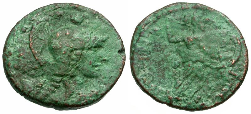 Obverse: Head of Athena right, wearing crested Corinthian helmet