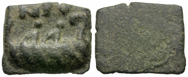 Obverse: Galley with two oarsmen, MPV above