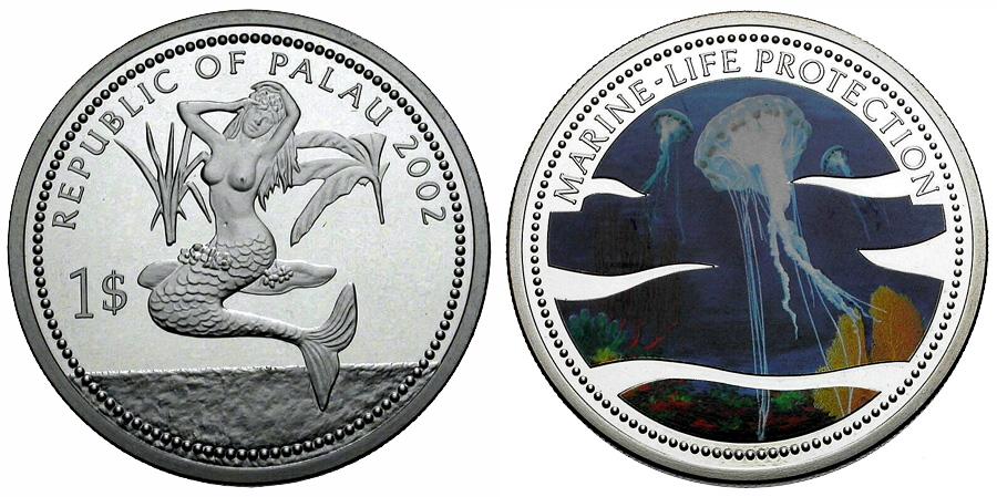 » Lot Info: Republic of Palau. Marine Life Protection Colorized Proof $1 / Jellyfish