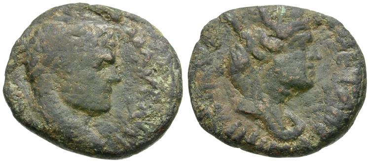 | Caracalla (AD 198-217). Mesopotamia. Carrhae Æ19 / Tyche |
