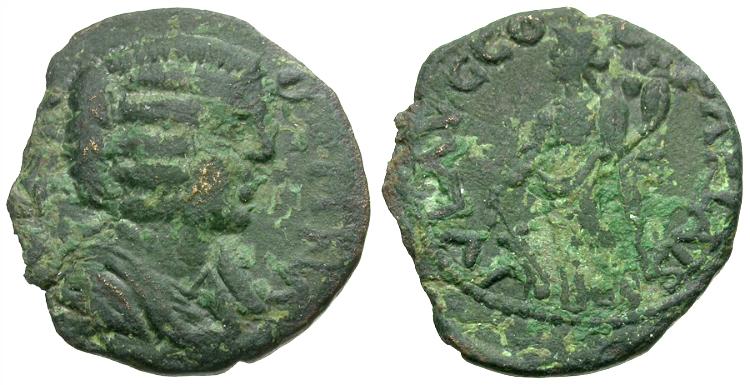 Reverse: IVL AVG COL PARLAIS, Tyche standing facing, head left, holding cornucopia and rudder