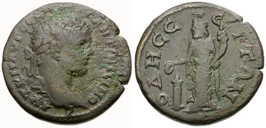 Reverse: OΔHCC-Є-ITΩN, Tyche standing left, sacrificing over altar