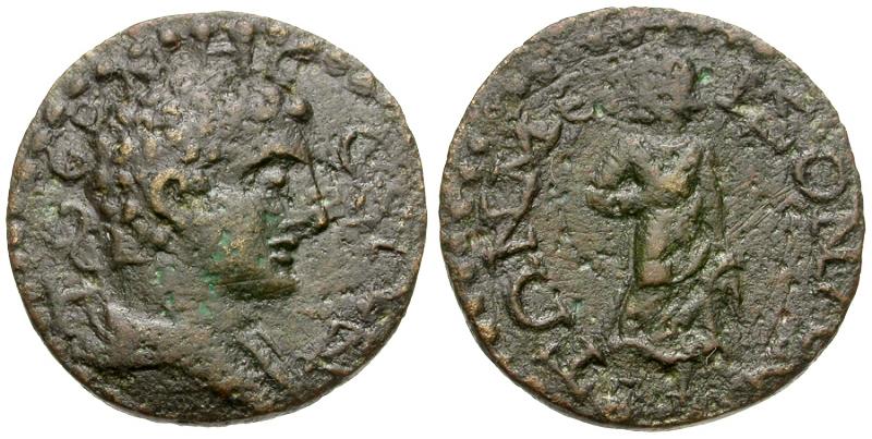 Reverse: ΤΩΝ ΜΕΙΖΟΝΩΝ, Apollo standing facing, head left, holding branch and lyre