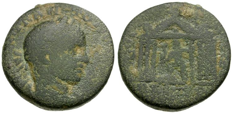 | Elagabalus (AD 218-222). Phoenicia. Berytus Æ22 / Temple |