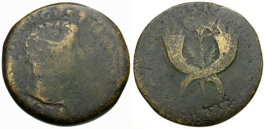 | Tiberius (AD 14-37). Commagene Æ Dupondius / Crossed Cornucopiae |