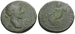 Commodus (AD 177-192). Cyrrhestica. Cyrrhus Æ23 / Zeus Seated