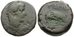 Tiberius (AD 14-37). Egypt. Alexandria Æ Obol / Hippopotamus