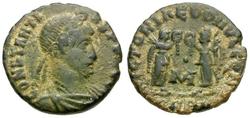 Obverse: D N VAL LICIN LICINIVS NOB C, helmeted and cuirassed bust left, spear over right shoulder and shield on left arm