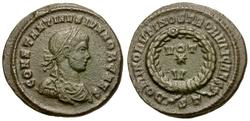 Obverse: CONSTANTINVS IVN NOB CAES, laureate, draped and cuirassed bust right