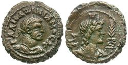 Reverse: BPETTIΩN, river god standing facing, holding scepter, crowning himself with wreath, Π monogram in right field