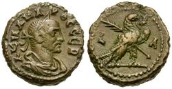 Reverse: Macedonian helmet, caduceus to left, rose to right, B-A across fields; T I below
